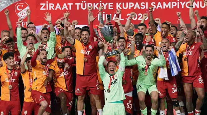 Galatasaray, 63. Ziraat Türkiye Kupası finalinde Trabzonspor’u 3-0 yenerek 19. kez Türkiye Kupası’nın sahibi oldu. Kupa, TFF Başkanı Hacıosmanoğlu tarafından Muslera’ya verildi. 2024-2025 sezonunun Ziraat Türkiye Kupası şampiyonu Galatasaray oldu. Sarı-kırmızılı ekip, finalde karşılaştığı Trabzonspor’u Gaziantep Stadyumu’nda Osimhen’in 2 ve Barış Alper Yılmaz’ın 1 golüyle 3-0 mağlup ederek kupayı müzesine götürdü. Bu galibiyetle birlikte Galatasaray, […]